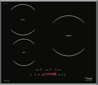 Ba vùng nấu: trái 1800 W (Booster 2200 W), giữa 1200 W (Booster 1600 W), phải 2500 W (Booster 3000 W)