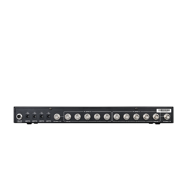 Thiết kế băng tần rộng UHF (450~950 MHz), cho phép 4 máy thu dùng chung ăng-ten;