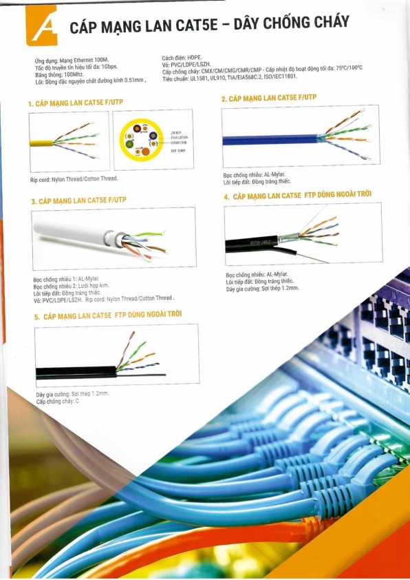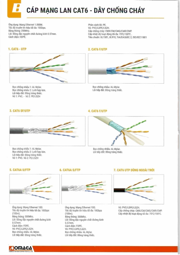 cable mạng Aomaga cat5E Cat 6 chống cháy tiêu chuẩn Mỹ