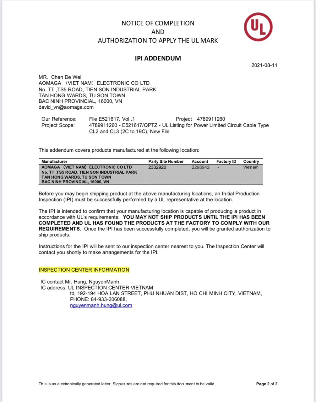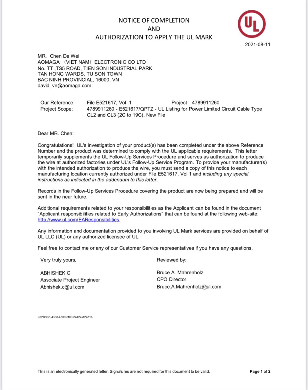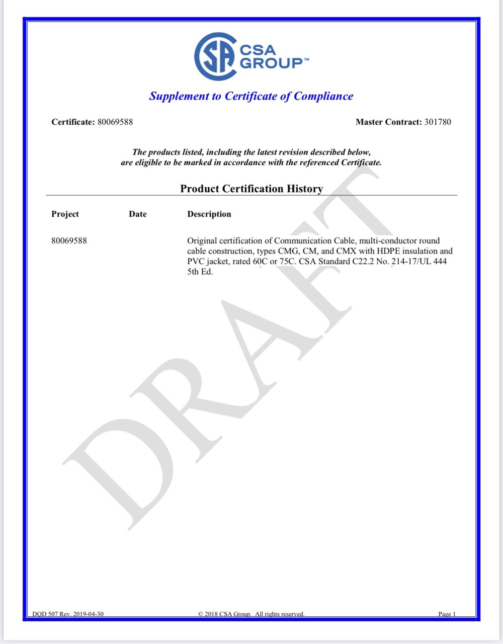 Tiêu chuẩn : UL1581, UL910, TIA, EIA568C.2, ISO / IEC11801