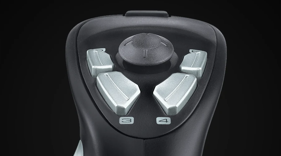 Tất cả là nhờ thao tác cổ tay. Nghiên cứu đã chỉ ra rằng kỹ năng điều khiển máy bay nâng cao nhờ vào bản năng và thời gian phản ứng. Để hỗ trợ phi công, các chuyên gia nghiên cứu của chúng tôi đã thiết kế ra một chiếc cần lái kiểu tay xoay tùy chỉnh cho cần điều khiển chuyên nghiệp Extreme 3D Pro, khiến cho việc điều khiển bằng một tay trở nên tự nhiên và ít dấu ấn thiết bị hơn.