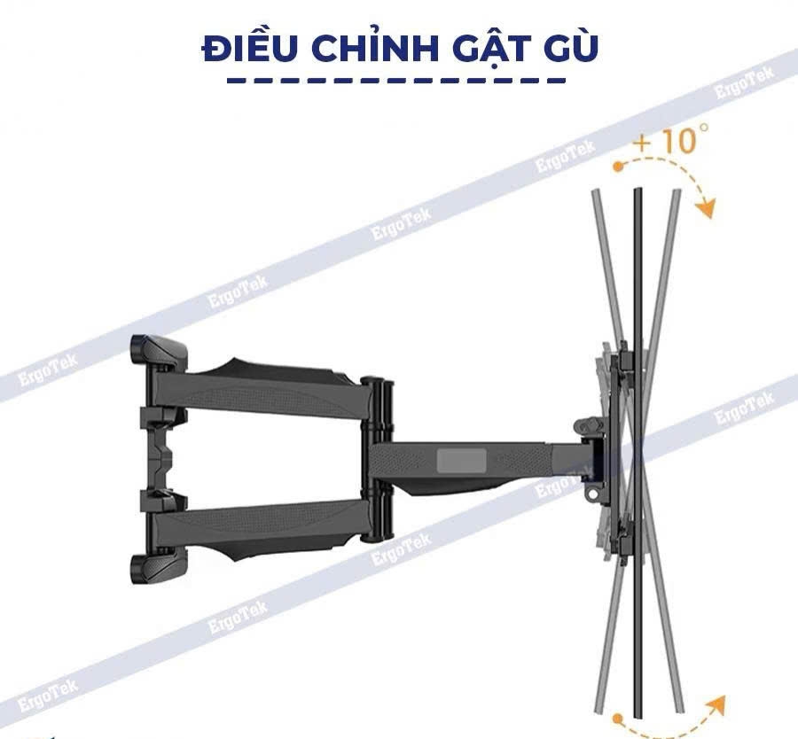 Kéo ra/Đẩy vào: Cánh tay đôi chắc chắn giúp TV có thể vươn ra xa khỏi tường và thu gọn lại, tối ưu hóa không gian.