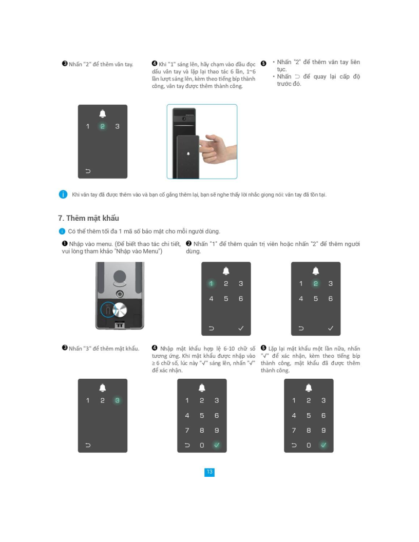 Khóa chứa tối đa 50 dấu vân tay, 50 mật khẩu và 100 thẻ.
