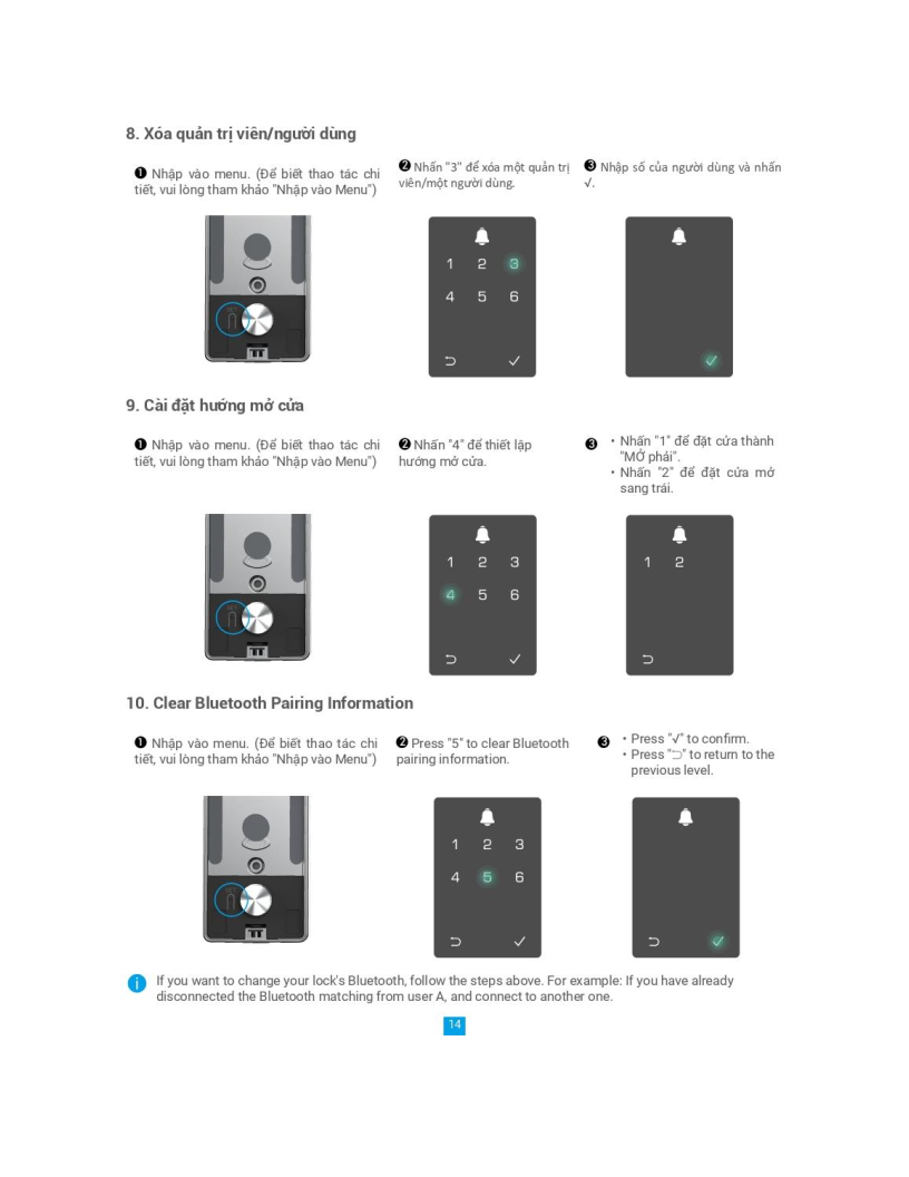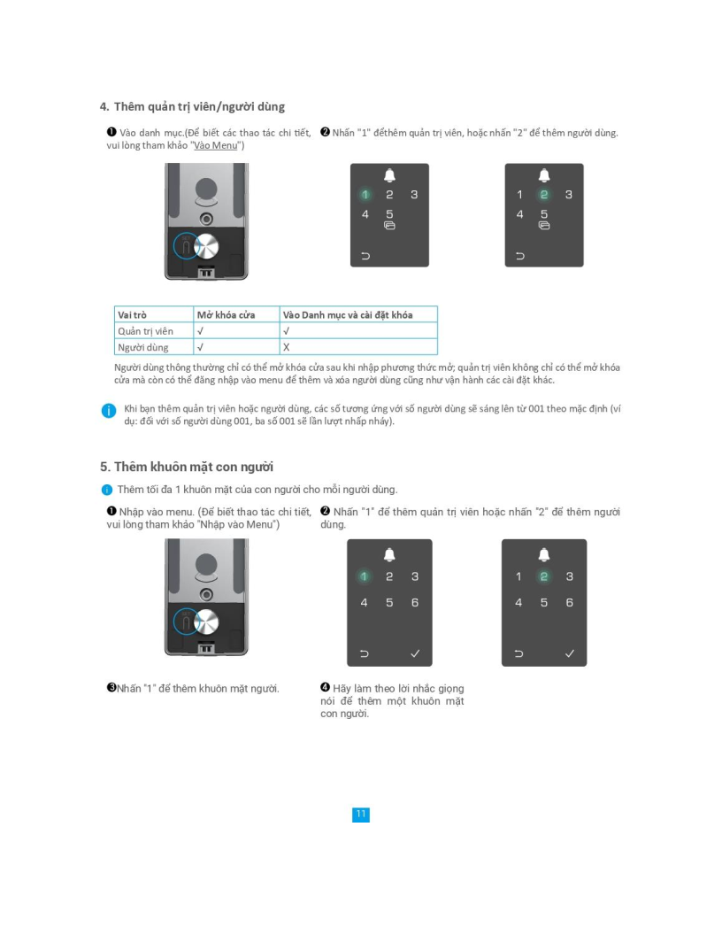 - Sau khi khởi tạo hoàn tất, khóa sẽ xóa tất cả thông tin người dùng. Sau khi cài đặt và cấu hình khóa, vui lòng thêm khuôn mặt, dấu vân tay hoặc mã số theo nhu cầu.