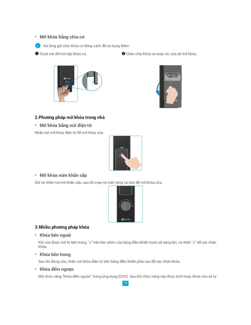 * Phương pháp mở khóa Face ID, Vân tay, Mật mã, Chìa khóa cơ, Khóa Bluetooth qua Ứng dụng EZVIZ, Mã tạm thời, Mở khóa từ xa