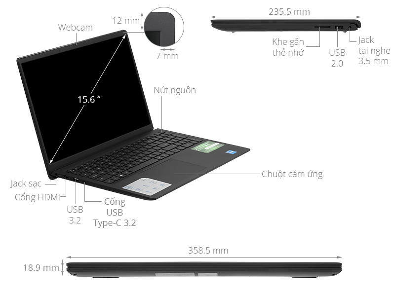 Laptop Dell Inspiron 3530 71011775 (Core i7-1355U | 8GB | 512GB | Intel Iris Xe | 15.6 inch FHD | Win 11 | Office | Đen)