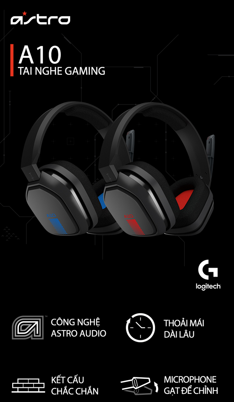 Tai nghe Logitech GAMING A10 GREY/BLUE (939-001741)