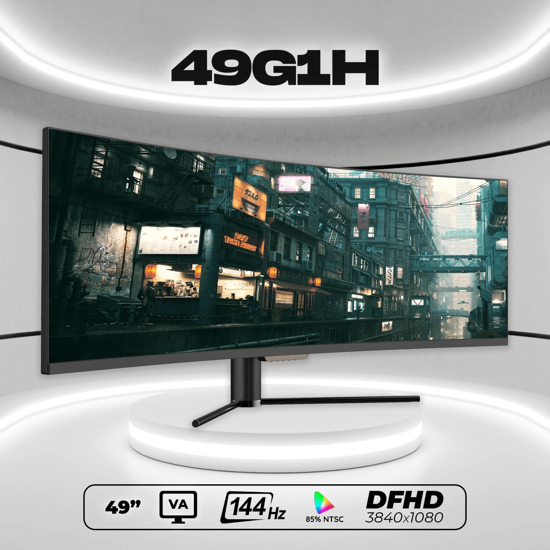 * Kích thước: 49 inches cong (Curved Screen) R1800