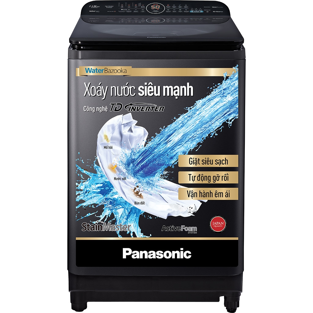 Máy giặt Panasonic Inverter 11.5 kg NA-FD11AR1BV là dòng máy giặt cửa trên hiện đại, tích hợp công nghệ tiên tiến giúp nâng cao hiệu quả giặt giũ, đồng thời tiết kiệm điện, nước và thời gian. Với khối lượng giặt lớn, sản phẩm phù hợp cho gia đình đông người (từ 5–7 người).
