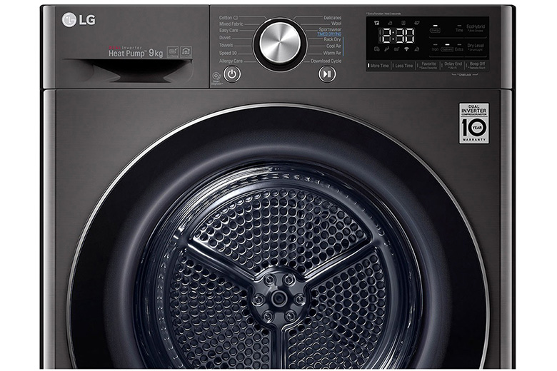 Máy sấy LG DVHP09B có sức chứa lên tới 9kg, thích hợp cho các hộ gia đình đông thành viên hoặc người có nhu cầu sấy nhiều quần áo một lần, tiết kiệm thời gian và công sức.