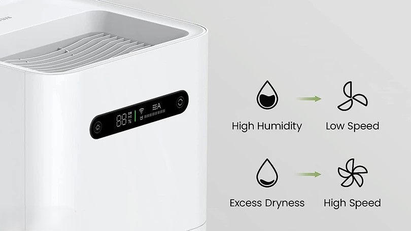 Màn hình LED hiển thị rõ ràng các thông số như độ ẩm hiện tại, chế độ sử dụng và lượng nước trong bình giúp bạn dễ dàng điều chỉnh theo nhu cầu.