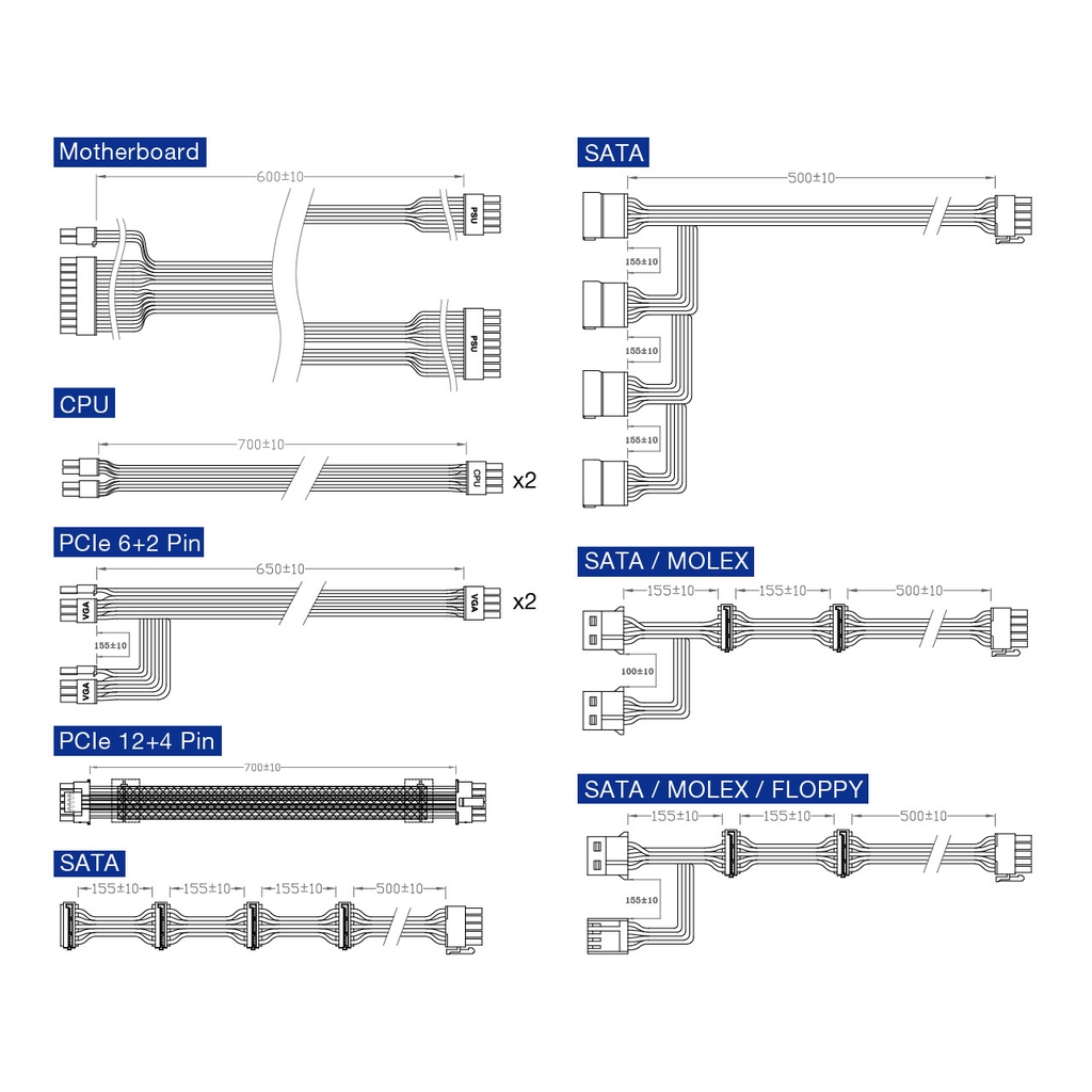 | Cáp nguồn | Full modular, ribbon flat màu đen |