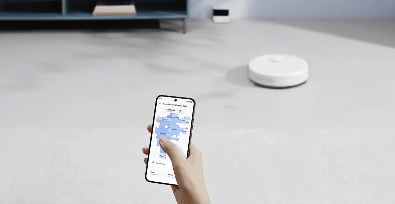 Ứng dụng Xiaomi Home giúp điều khiển từ xa, lên lịch, chọn vùng dọn, tạo tường ảo. Tương thích trợ lý ảo Google Assistant và Amazon Alexa cho phép ra lệnh giọng nói tiện lợi.