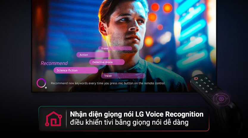 - Magic Remote có micro cho phép bạn tìm kiếm bằng giọng nói tiếng Việt cùng tính năng LG Voice Search thuận tiện. Thiết bị còn tích hợp những trợ lý giọng nói Google Assistant (chưa có tiếng Việt), Alexa (chưa có tiếng Việt) để người dùng điều khiển tivi dễ dàng hơn.
