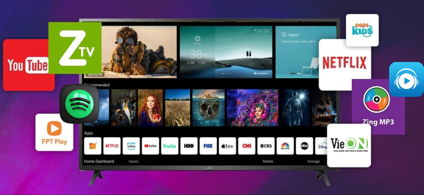 Thêm vào đó, kho ứng dụng phong phú với những ứng dụng phổ biến như Youtube, Netflix, Trình duyệt web, FPT Play, MyTV, Clip TV, Nhaccuatui, Spotify,... chắc chắn sẽ mang đến cho bạn và gia đình những giây phút giải trí tràn đầy hứng khởi.