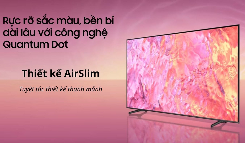QLED 4K với công nghệ Quantum Dot giúp hiển thị màu sắc sống động và chính xác, tái tạo dải màu rộng với 100% DCI-P3.