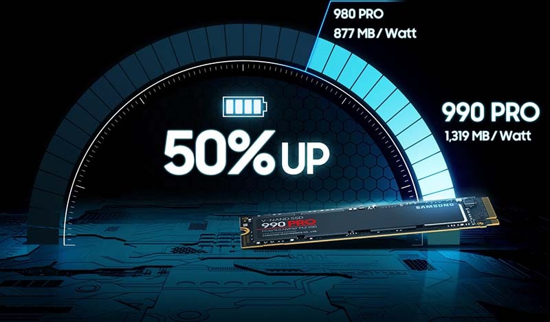 Phiên bản 990 PRO Heatsink có tản nhiệt tích hợp để chống giảm tốc do nóng.