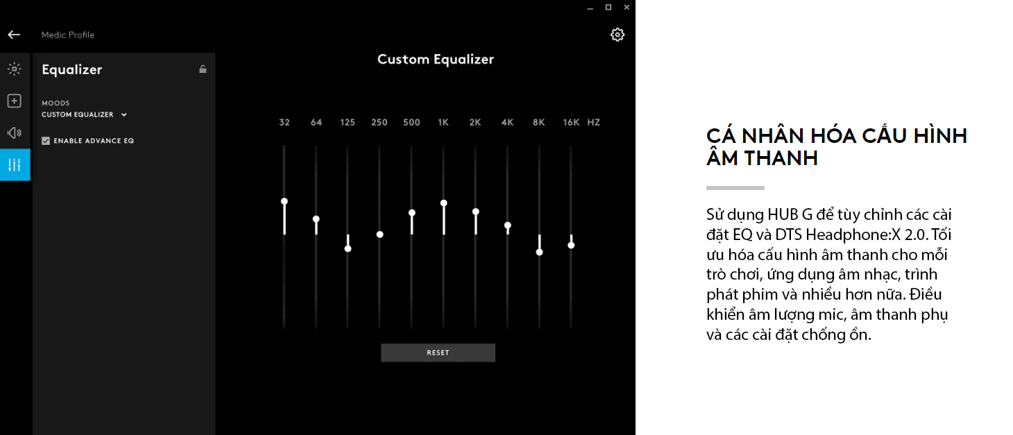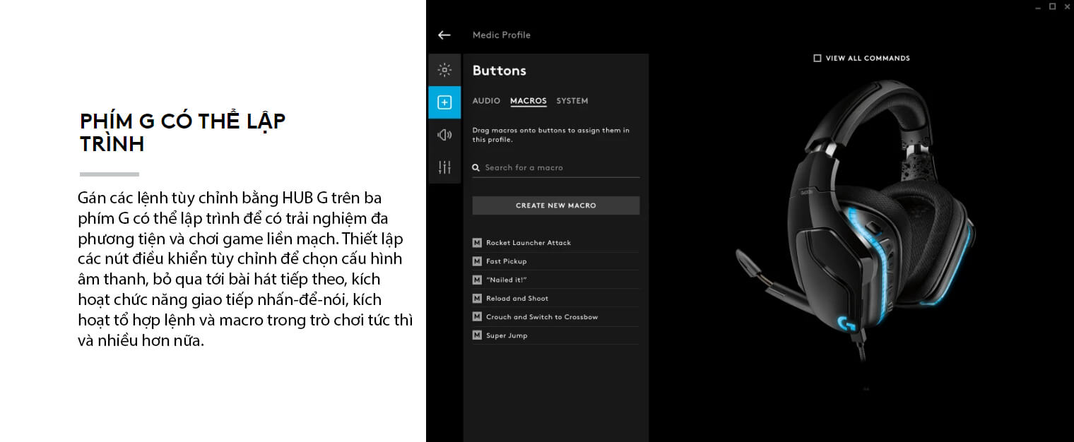 Với phần mềm chơi game HUB của Logitech G, bạn có thể cá nhân hóa ánh sáng RGB LIGHTSYNC, lập trình các phím G với macro và lệnh trong trò chơi, và tùy chỉnh các tùy chọn âm thanh với các cấu hình độc đáo cho mỗi trò chơi và ứng dụng.
