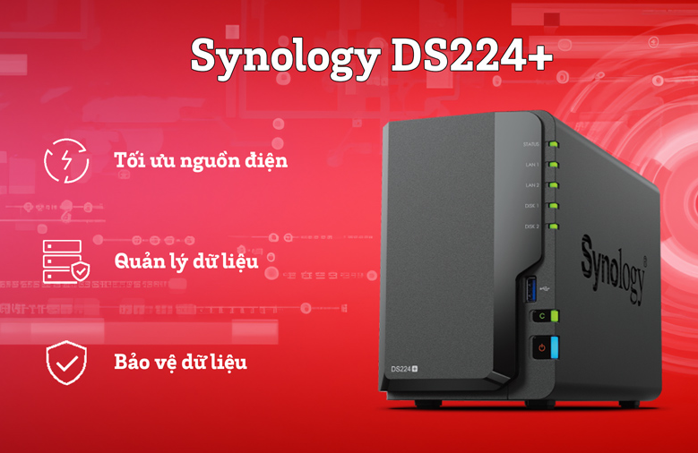 Synology DS224+ là mẫu thiết bị lưu trữ lý tưởng cho người dùng gia đình, cá nhân và các mô hình doanh nghiệp vừa - nhỏ. Thiết bị cung cấp một loạt các ứng dụng sao lưu, đồng bộ, bảo mật hiện đại, hỗ trợ tối đa cho việc bảo vệ dữ liệu quan trọng của người dùng. Có thể kể đến như: