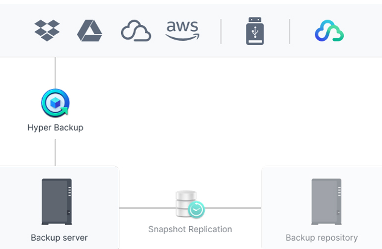 Hyper Backup là ứng dụng sao lưu mạnh mẽ và hiệu quả nhất mà Synology cung cấp cho người dùng doanh nghiệp. Ứng dụng này sẽ cho phép tạo ra các bản sao lưu của toàn bộ dữ liệu người dùng, cấu hình NAS, tệp tin hệ thống trên DS224+, được lưu trữ trên các nền tảng vật lý khác như: thiết bị Nas, máy chủ lưu trữ từ xa, thiết bị mở rộng DAS… Đồng thời, Hyper Backup cũng cho phép người dùng upload các bản sao lưu lên các dịch vụ lưu trữ đám mây công cộng như: Google Drive, Dropbox, OneDrive, C2 cloud,….
